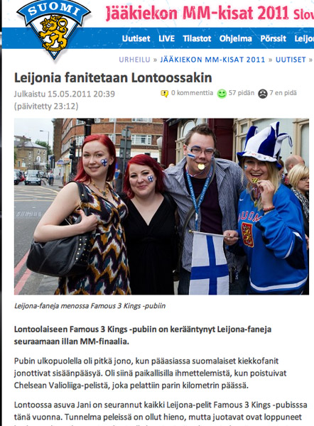 Obviously too short of a notice to get accredited for such an event – but I knew of a pub in London that shows these games live, and is also a gathering place for Ice Hockey fans from Finland to watch the games.. Couple of quick Emails later I had assignments to go to the pub, follow the game, interview and photograph some Finnish fans.. and get paid for it.